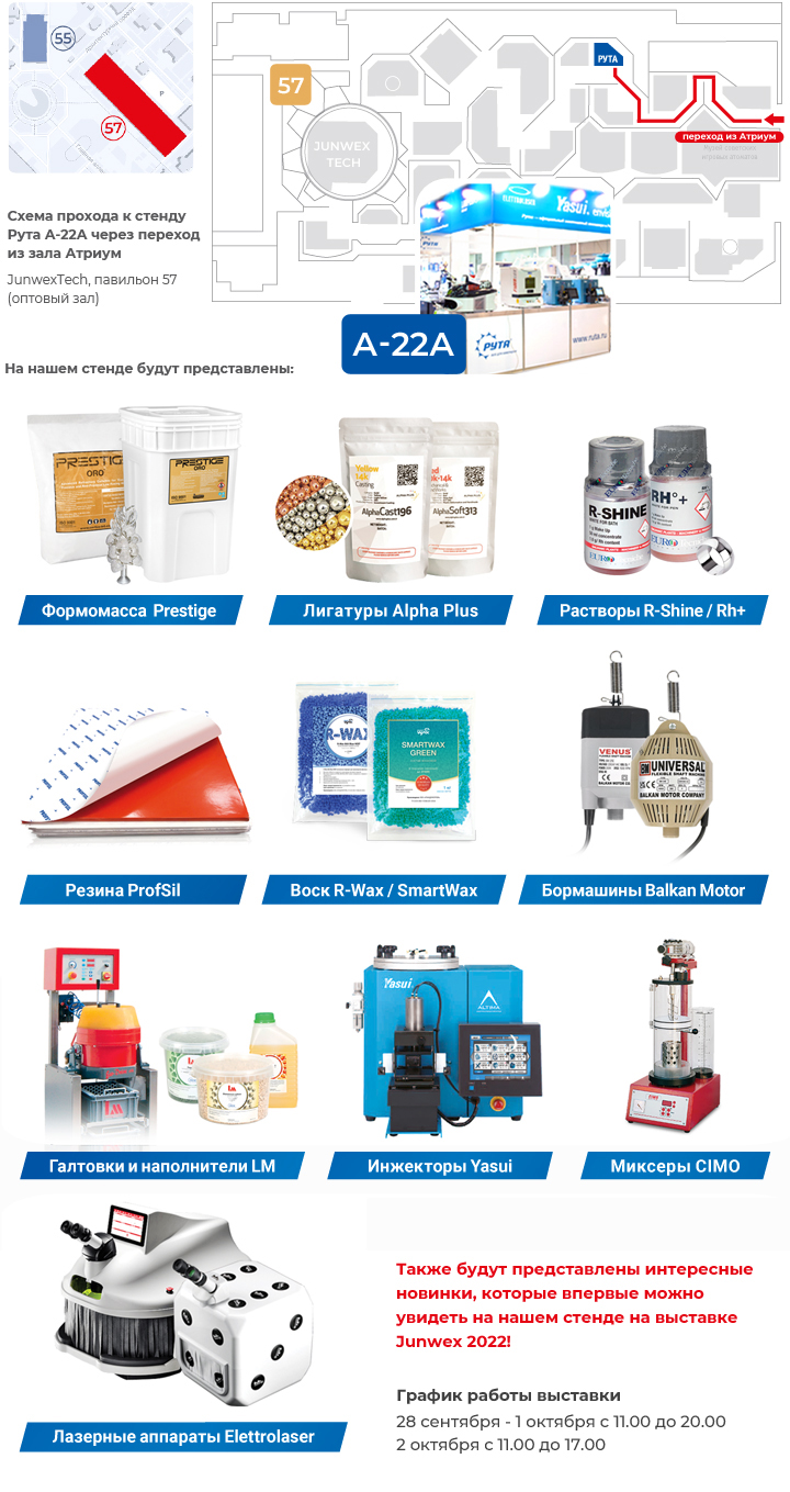 Уважаемые Коллеги, приглашаем вас посетить стенд «Рута» на XVIII Международной ювелирной выставке Junwex 2022 в Москве. |